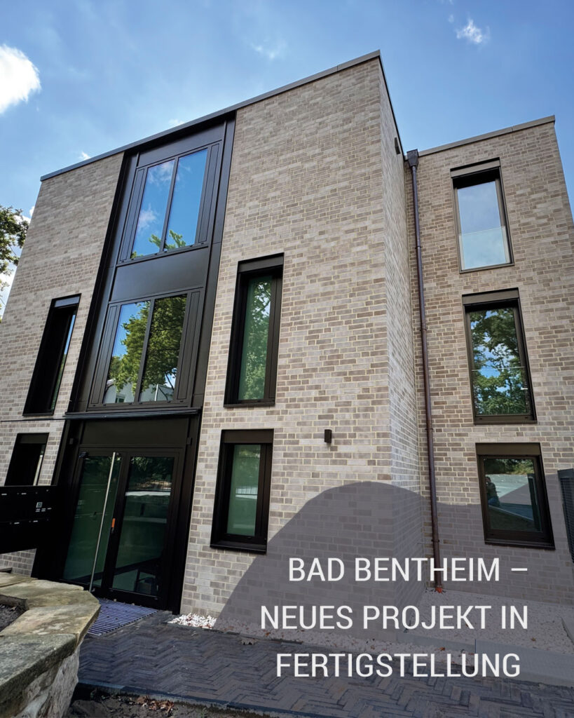 In Bad Bentheim sind wir in der Fertigstellung eines modernen Mehrfamilienhauses, mit 5 Wohneinheiten.